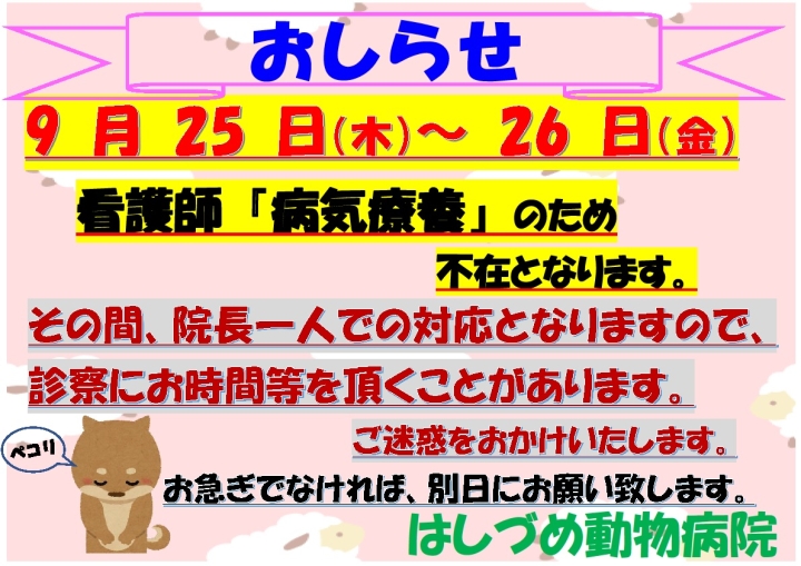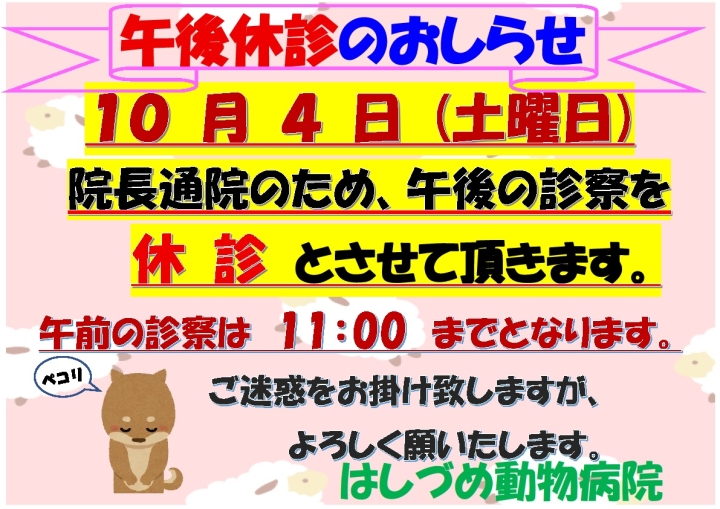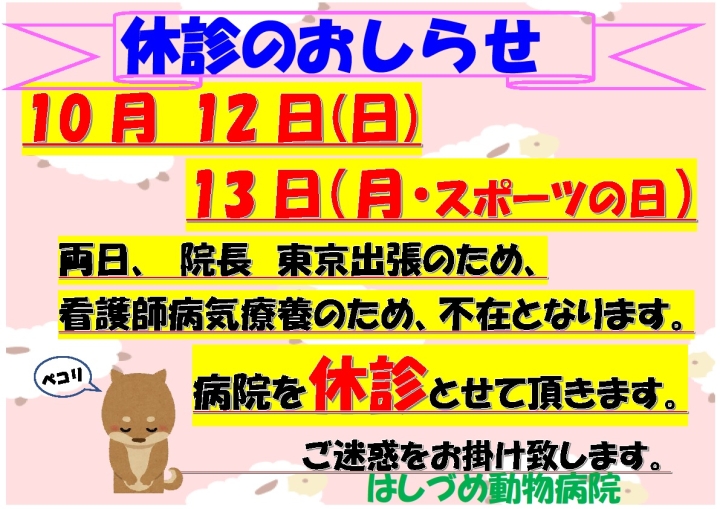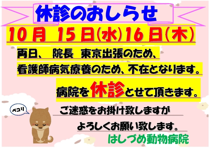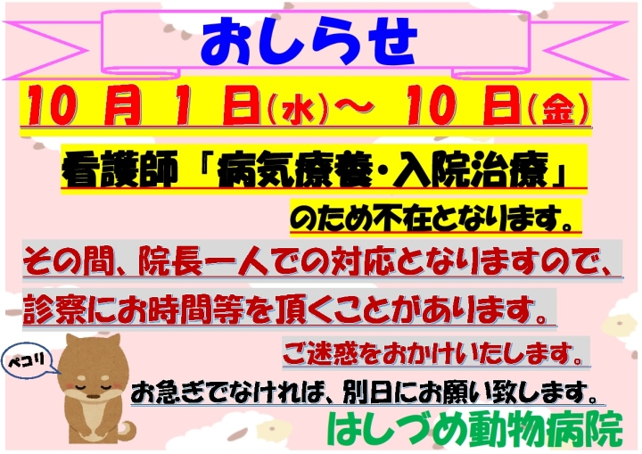 10月 1 日(水)~ 10日(金)診察の おしらせ