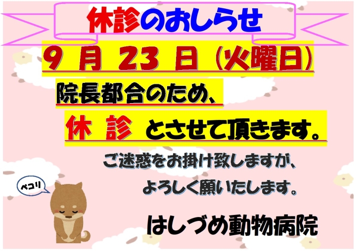 第3水曜日 休診のおしらせ(院長不在・東京出張)